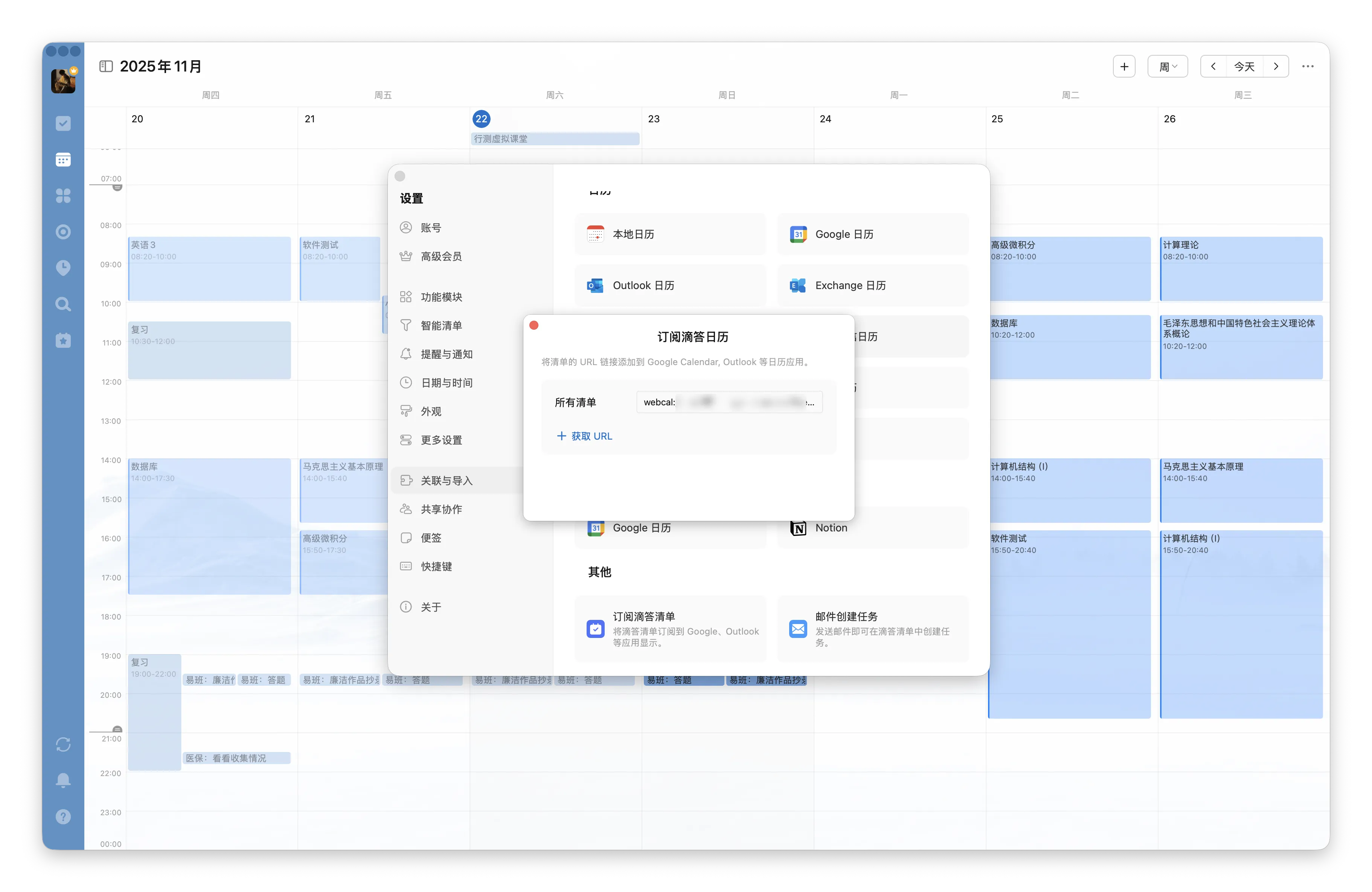 我这边用的是 TickTick 嘀嗒清单,这边可以生成一个嘀嗒的任务日历订阅链接,然后把这个链接添加到你的日历中,就能实现任务和日程的统一管理。